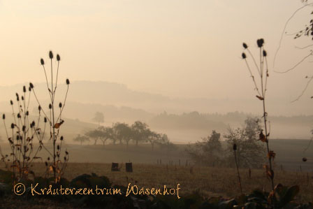 Ein kleiner Hinweis vorab: falls Ihr Browser meine Seite nicht vollständig unterstützt, Sie also nicht alles ganz lesen können, können Sie unter www.mozilla.de den Firefox kostenlos runterladen, damit funktioniert es bestimmt.... Der späte Herbst ist da und es wird schon langsam winterlich im Wasenhof - die letzten bunten Blätter tanzen im Wind, ein paar einzelne Rosen schicken letzte Blütengrüße oder leuchten mit ihren Hagebutten, die Minzen duften noch, auch Moxa und Beifuß sind zu imposanter Höhe gewachsen. Doch es ist kalt geworden, der erste Schnee hatte schon alles bedeckt, es gab schon Eisblumen an den Fenstern (ab -10°C) und die Nebelschleier in den Tälern und das jetzt kalte, klare WinterLicht zeigt den Abscshied vim Herbst - ein neuer WinterZauber lag über unseren Hügeln. Die Tage sind kurz, die langen Nächte kalt und die dunkle Zeit hüllt unsere Erde als ob sie sich nun zur Ruhe legen möchte - immer wieder riecht es nach Winter - (selbst dann, wenn die Sonne, so sie da ist, mit ihrer Wärme gleich wieder einen Hauch von FrühlingsSehnsucht zuläßt) Vielen Dank für Euren Besuch bei unserem AdventsMärktle!! (unserem offenen Hofladen vor dem 1. Advent) Es war soo schön, so viele von Euch noch einmal zu sehen, zu umarmen und gemeinsam einen Punsch zu genießen, schöne Gespräche, viele gute Wünsch und die liebevolle Nähe zu genießen - schön daß es Euch gibt! - schön dass es Dich gibt!! Es ist einfach ein schöner, traditioneller WasenhofAbschluß - ganz herzlichen Dank! Wir sind noch ein paar mal im Wasenhof (falls Du noch was brauchst, melde Dich einfach nochmal per Mail) - am 3.12. ist meine Natalie zum letzten mal im Büro, dann wieder im März 2026. - Dann geht der Wasenhof langsam in seinen Winterschlaf - NeuStart 2026 im Büro ab (Mitte) März. Einige Seminare sind schon fast voll und Du kannst Dich den ganzen Winter über anmelden. Die Anmeldungen werden dann im März bestätigt und, falls ein Seminar schon zu voll ist, dann gelten die Anmeldungen nach ihrem zeitlichen Eingang. Eine Anmeldung ist bei uns eingegangen, wenn bei Dir "vielen Dank...." kommt. Falls Deine Firewall unsere Seite blockiert oder es irgendwie nicht klappt, dann schreib uns einfach ein Mail und schreib, wo Du gerne dabei wärst, dann zählt das Mail als Anmeldeeingang. Das gab es am AdvetnsMärktle: (es wären auch noch ein paar Sachen da.... und falls es Dir in der Woche nicht gereicht hat, dann melde Dich einfach per Mail....) In diesem Jahr hatten wir als Besonderheiten unsere feinen Essige mit Wildbeeren angesetzt, die Sonnenstrahlen eingefangen in Ölen, Balsamen und Tees..., eine schöne Auswahl an PflanzenDuftStövchen (handgetöpferte Unikate aus dem Lautertal), viele schöne und interessante Bücher (auch für Kinder), schöne Kalender, die Aussaattage 2026, unseren feinen Streuobstsaft (diesjahr: Apfel und Apfel-Quitte) - auch der Rose wollen wir diesjahr besonders huldigen und noch vieles mehr wartet darauf von Dir entdeckt zu werden! Wir haben bis dahin auch wieder den feinen Heidehonig - einen wunderbaren Heide-Wabenhonig aus der Korbimkerei von "unserem" Rob, dem BienenkorbFlechtmeister. 2026 kannst Du mit Rob im Wasenhof noch einmal die Kunst der Korbflechterei und die Besonderheiten der Bienenkorb-Imkerei erlernen. Natürlich darf man in dieser Advents-Märktles-Zeit auch durch den Wasenhof schlendern und die Ruhe genießen, einen Punsch trinken, a Schwätzle halten, aufs Hochzeitsbänkle sitzen, über die Spirale gehen - oder einfach den HerzensDank für Frieden und Bewahrung und all das, was wir an Gutem im vergangenen Jahr erleben durften, an Mutter Erde und unseren dreieinigen Vater im Himmel als Segen über die Hügel schicken..... Die Planungen für unser Jubiläumsjahr 2026 sind soweit fertig und fast alles ist auch bereits eingestellt - mit zwei schönen Highlights mit altem Handwerk... Den Start macht das GastSeminar Bienenkorb flechten wieder mit Ante und Rob im April 2026 (10.-12.4.2026) Es ist das Wochenende nach Ostern (auf den weißen Sonntag). Hier lernst Du die alte Stroh-Korbflechttechnik mit der man nicht nur schöne Bienenkörbe machen kann, denn früher wurden so auch Brotkörbe und vieles andere mehr hergestellt. Eine tolle Technik, bei der es sich lohnt sie kennen zu lernen. Ich hoffe sehr, dass das Seminar auch in diesem Jahr stattfinden kann - nutzt diese Chance noch einmal! Und den Abschluß des JubiläumsJahres 2026 wird die einmalige Gelegenheit der natürlichen Ledergerbung (Hirngerbung, am 1.- 4.10.2026) sein. In diesem Seminar werden wir mit einem erfahrenen Ledergerber auf ganz natürliche Weise feines weiches Leder selbst herstellen - diese wunderbare Technik erlernen. Dazu kommt unser Gerber zusätzlich im August die über 500 km über die Alpen gefahren... Da dies viel Vorbereitung bedarf, müssen wir diesmal spätestens Mitte Juli wissen, wer daran teilnehmen möchte, denn dann müssen wir die Felle besorgen und so vorbereiten, dass wir in den wenigen SeminarTagen das ganze Fell in ein schönes Leder verwandeln können. Da ich aus einer LederFamilie komme (mein Opa war Sattler, meine Mama Feintäschner), freue ich mich ganz besonders darauf!! In der darauffolgenden Woche starten unsere Weiden 2025 - einmal am 17.4.2026 morgens das Schneiden, Erkennen der Sorten und vermehren, auch für zuhause. Und daran anschließend die Kreative KräuterWerkstatt Weide der Verarbeitung, der Heilkraft und dem Flechten (Korb, Drehstäbe, Vögelchen oder Herzen... - was man gerne flechten möchte). Da könnte man diesmal auch eine Kreative Wasenhof-Urlaubswoche draus machen - ein ganz spezielles JubiläumsJahresAngebot - für den Anfang und das Ende unseres 20. Kräuterzentrum-Wasenhof-JubiläumsJahres. Das letzte (HPA-)AusbildungsSeminar 2025 war im September das Hausmittel & Organsystemik - mit einer Übersicht über die Zusammenhänge im Körper, damit man leichter die richtigen Kräuter und Hausmittel auswählen und anwenden kann - ein P